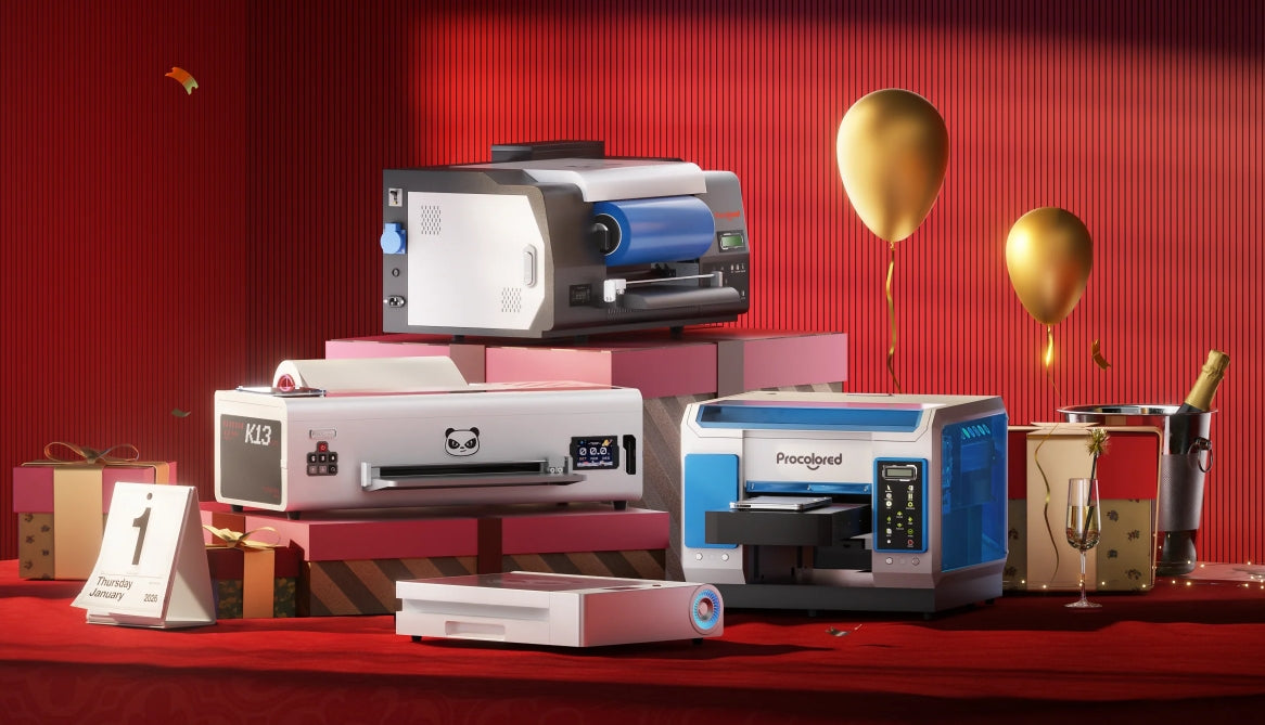 Das Aufstocken von Druckmaterialien wird jetzt günstiger! Während unseres Neujahrsverkaufs bieten wir bis zu 15% Rabatt auf DTF- und UV-Verbrauchsmaterialien, einschließlich Tinten, Transferpapieren und mehr. Egal, ob Sie ein neuer Kunde oder ein treuer Käufer sind, wir haben riesige Einsparungen auf alle Materialien, die Sie benötigen.