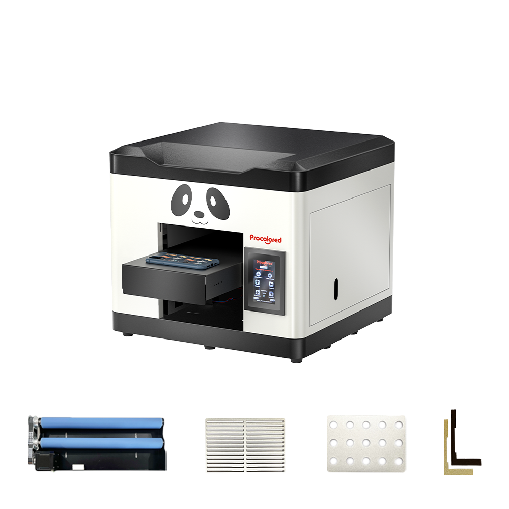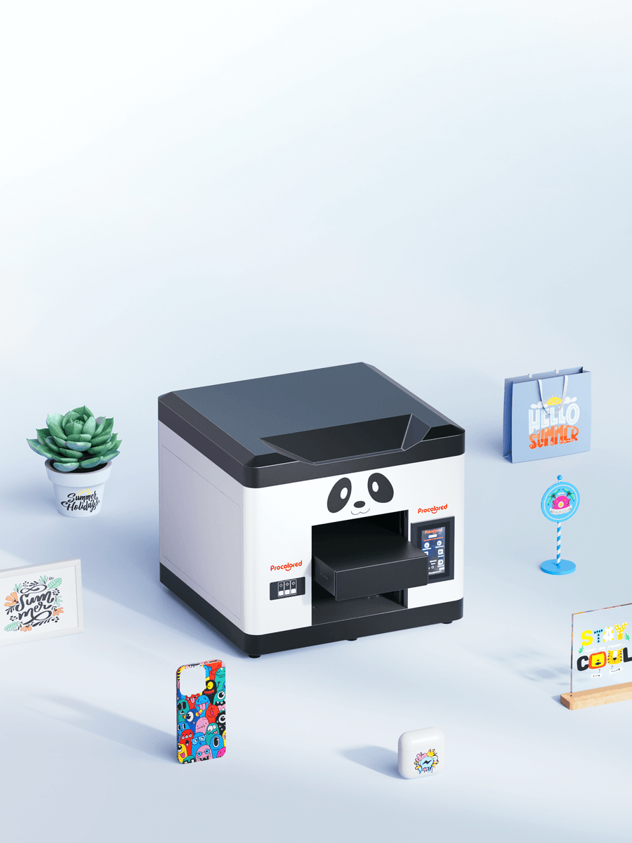 Der A4 UV-Drucker übernimmt das typische Panda-Design von Procolored und wurde mit einem eleganteren und nahtloseren Erscheinungsbild aufgerüstet. Er ist in der Lage, schnell trocknende Grafiken auf festen Substraten zu drucken, einschließlich: Handyhüllen, Leder, Acryl, Lithografie, Karten, CDs, USB-Sticks, Namensschilder und mehr.