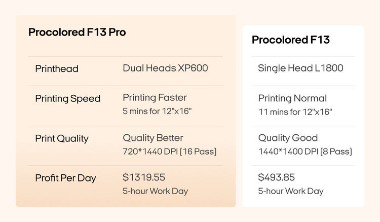 Der Procolored F13 Pro ist ein fortschrittlicher, benutzerfreundlicher DTF-Drucker mit zwei Druckköpfen. Er produziert professionelle Drucke mit unglaublicher Geschwindigkeit.