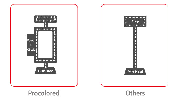 Das Tintenzirkulationssystem ist unsere Patenttechnologie. Das kontinuierliche Zirkulationssystem verhindert effektiv das Verstopfen der Düse und verlängert so die Lebensdauer des Druckkopfes um 50% im Vergleich zu herkömmlichen Druckern.