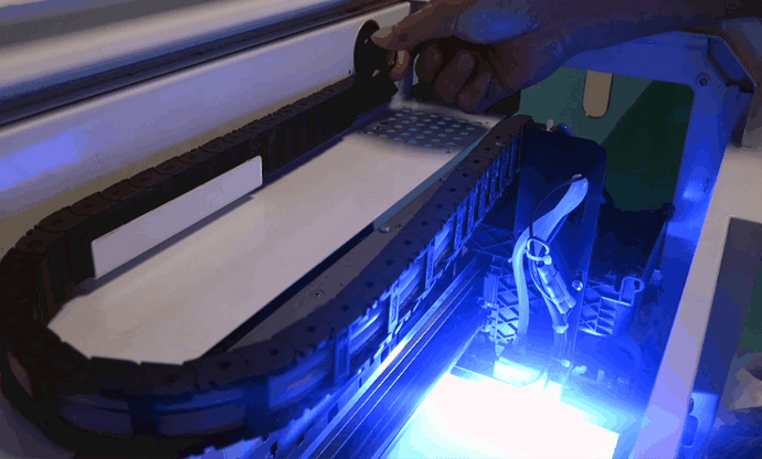 Die Leistung der UV-Lampe kann eingestellt und vor Überhitzung geschützt werden, wodurch die Lebensdauer der Lampe verlängert wird und Sie mehr Materialprodukte wie Polyesterfolie bedrucken können.